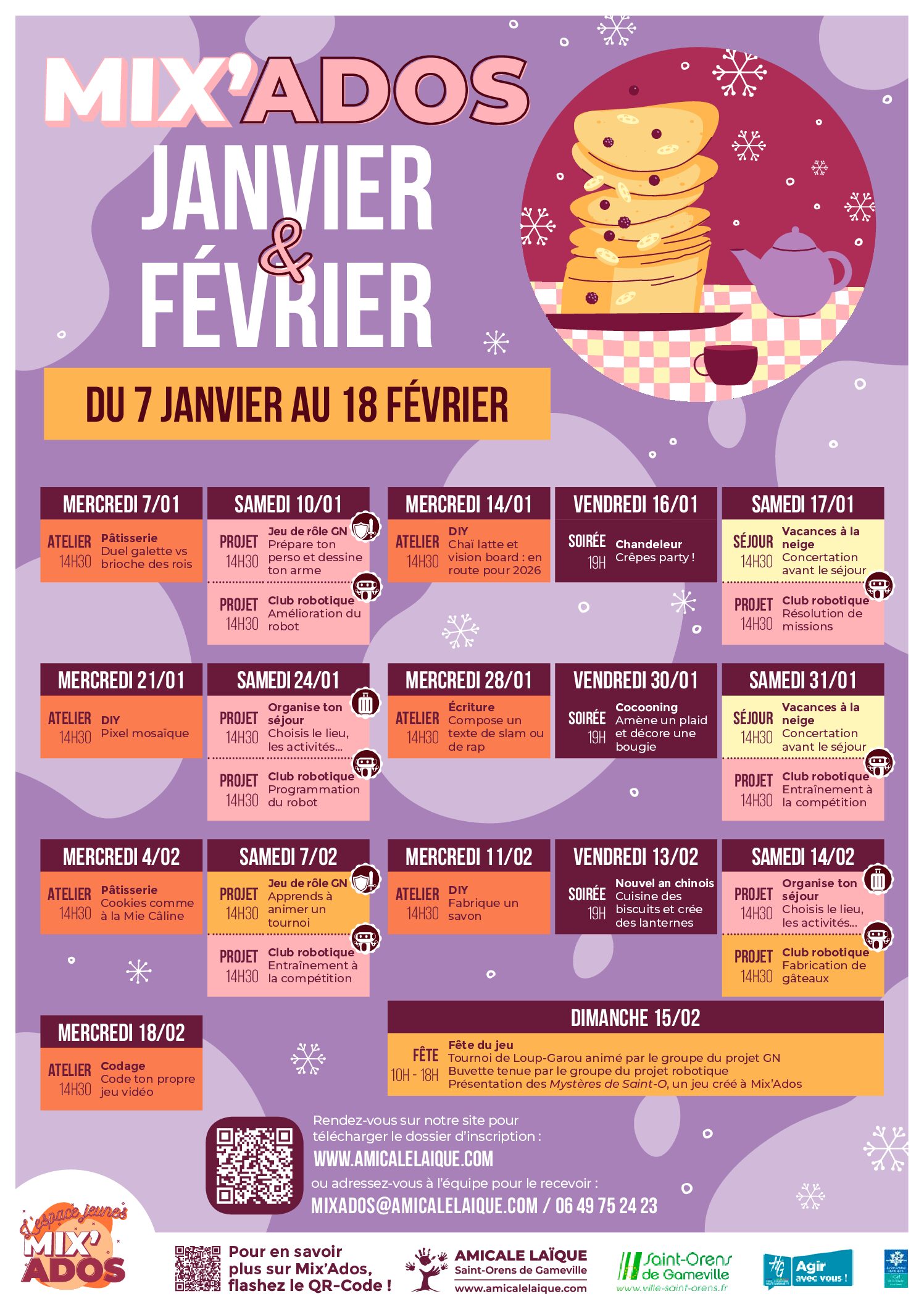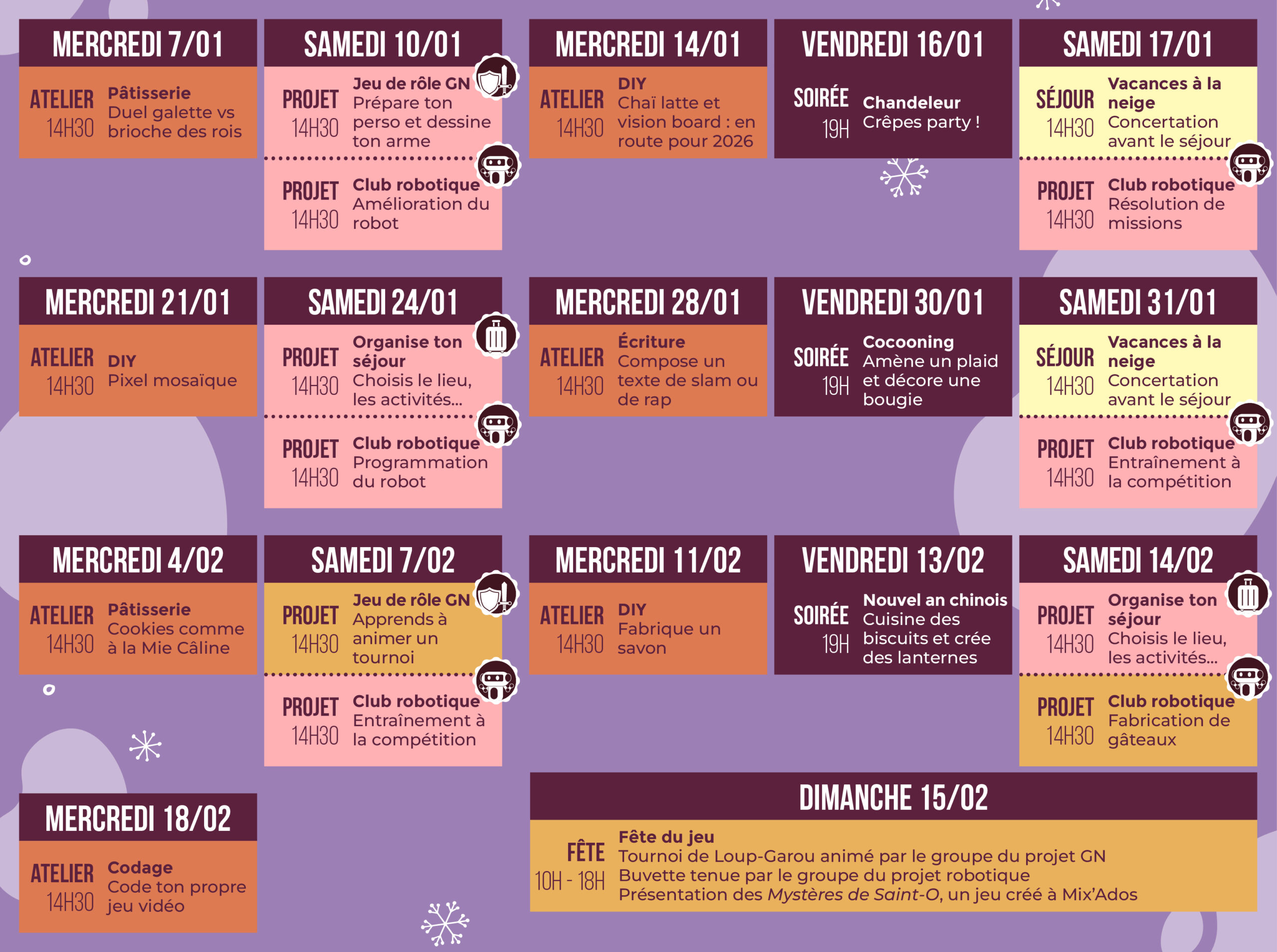 Le programme des mois de janvier et février à Mix’Ados est arrivé !