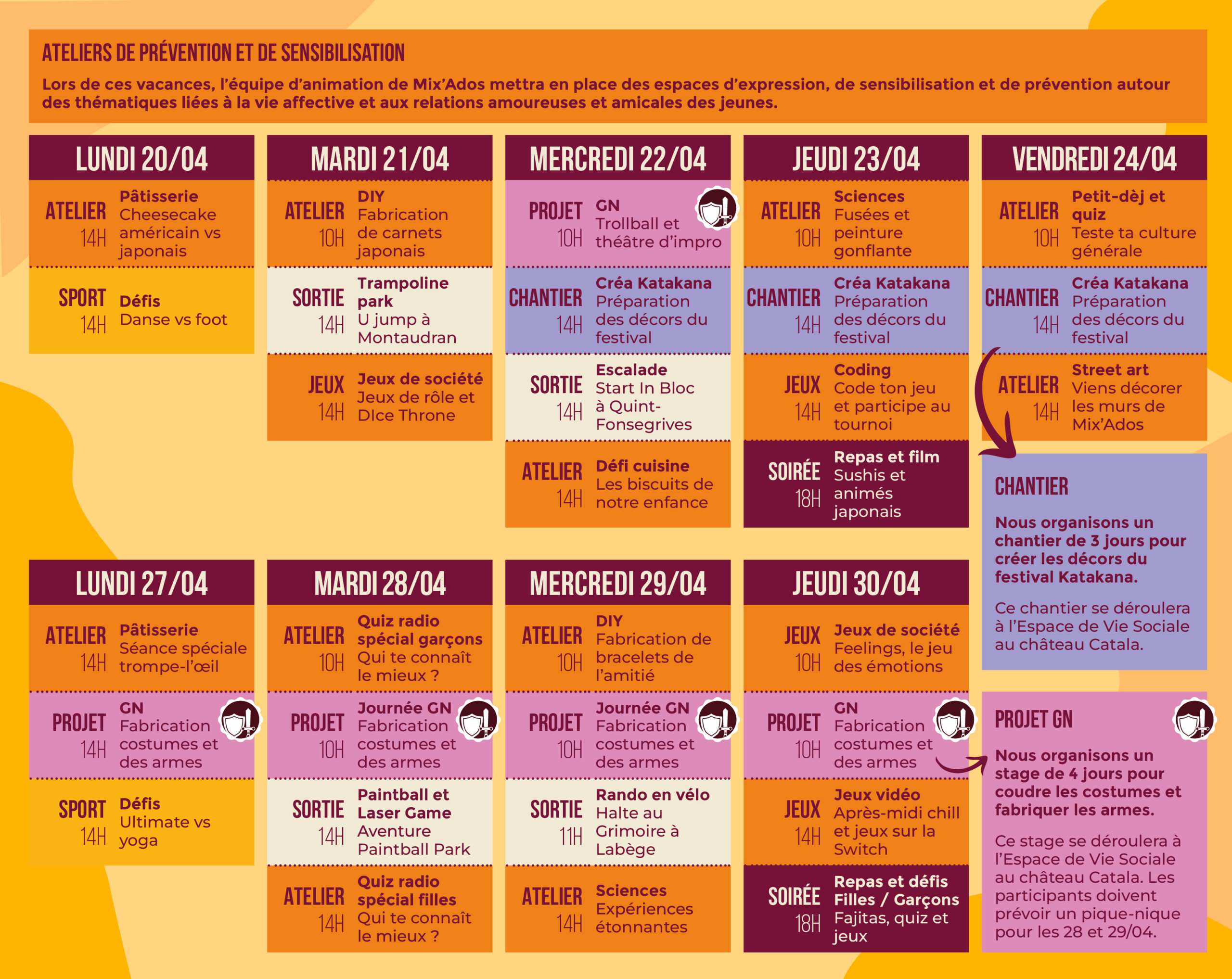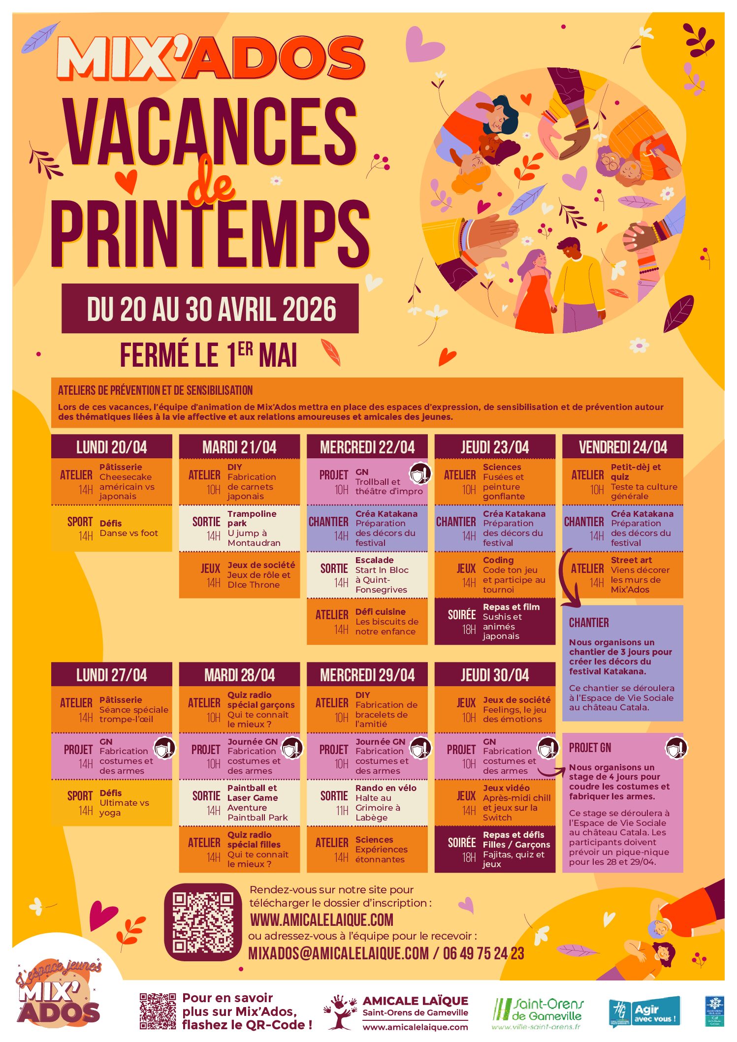 Le programme des vacances de printemps à Mix'Ados est arrivé !