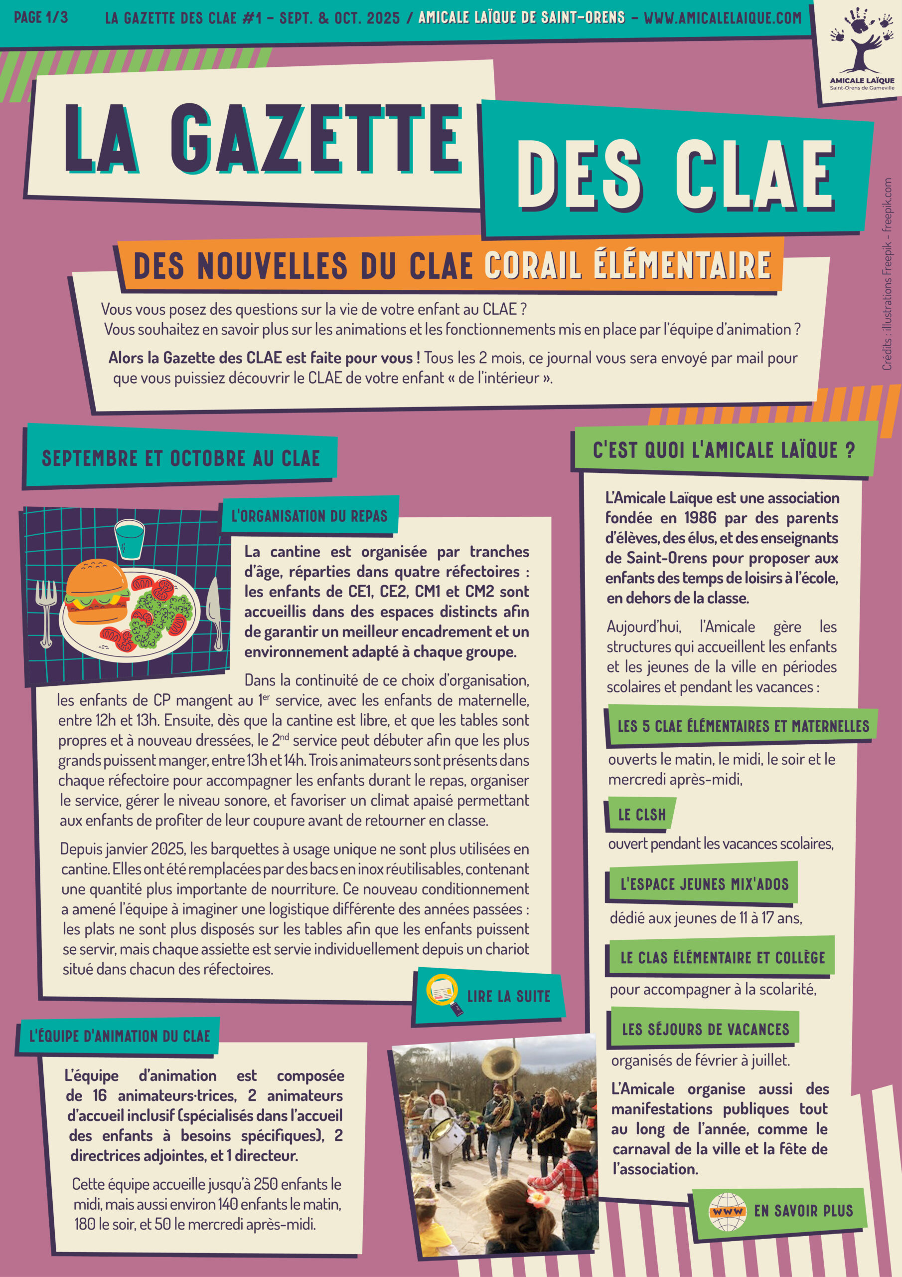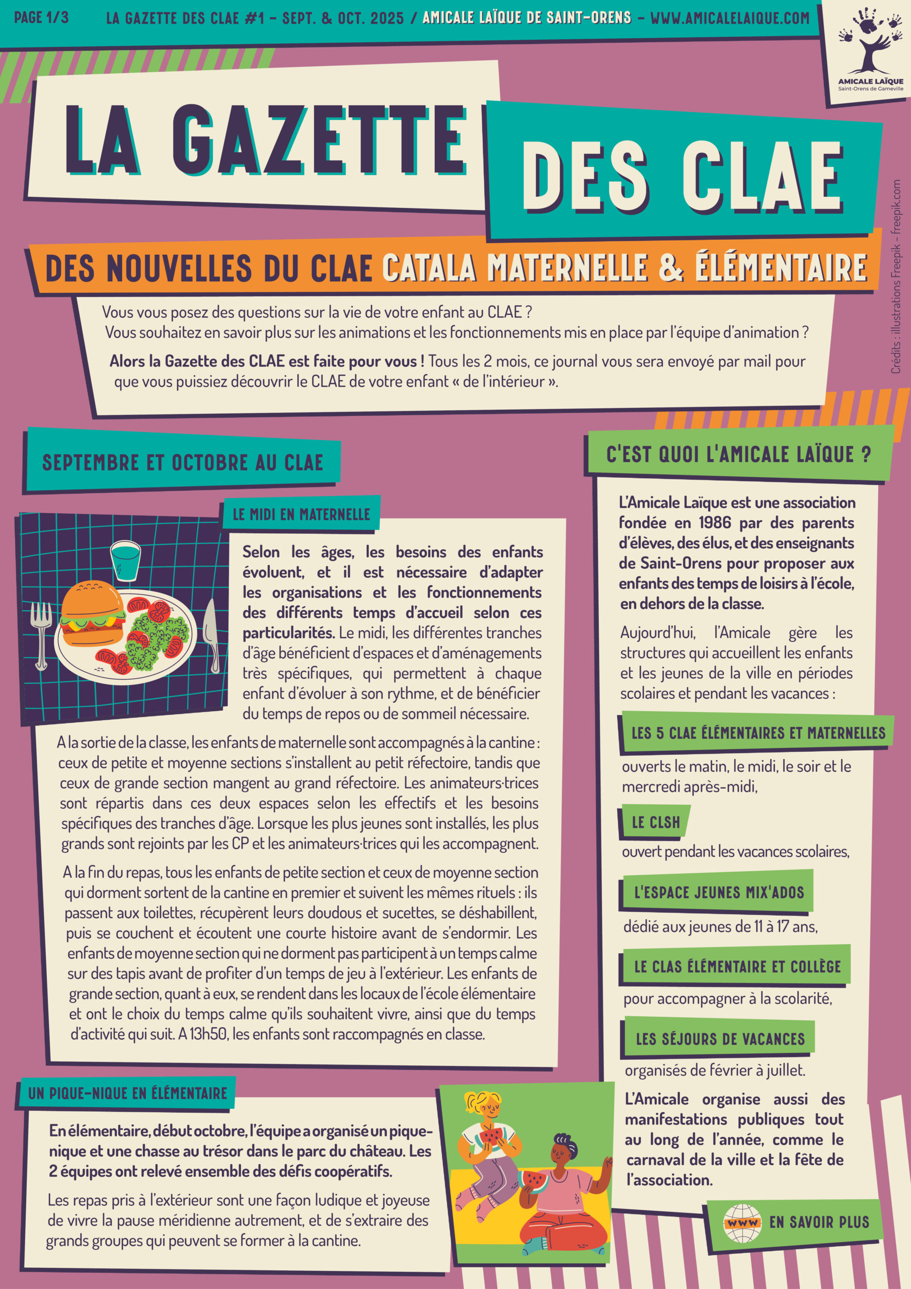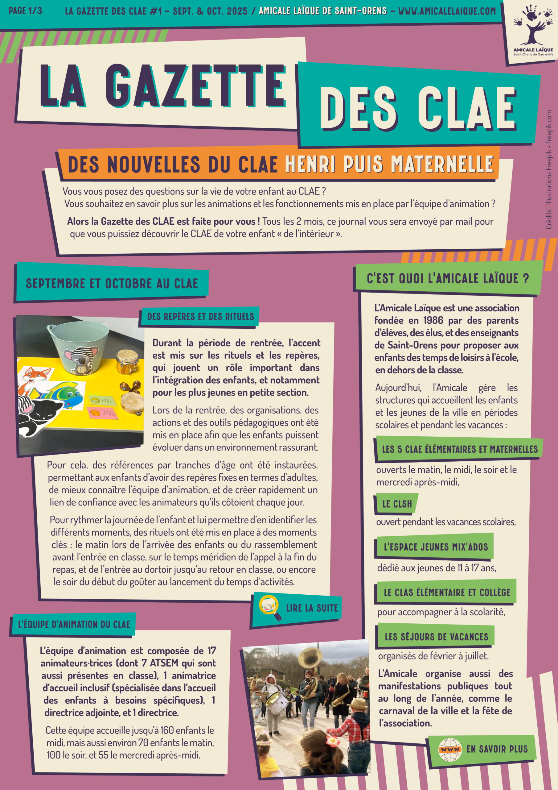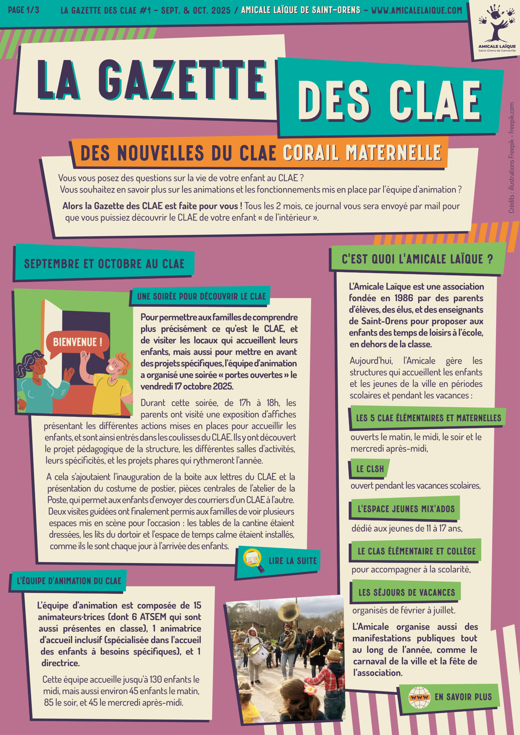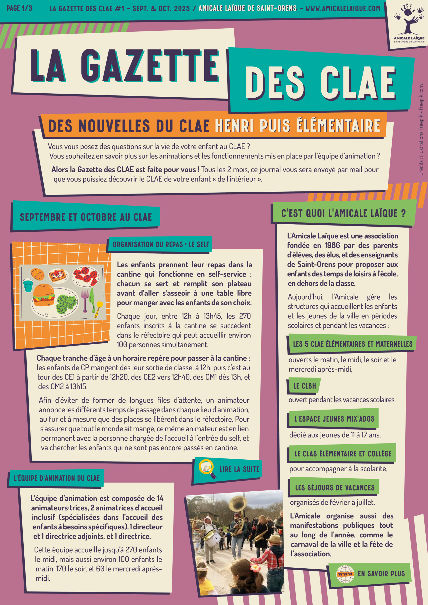 Tous les 2 mois, ce journal vous sera envoyé par mail et sera mis en ligne sur ce site pour que vous puissiez découvrir le CLAE de votre enfant « de l’intérieur ».
